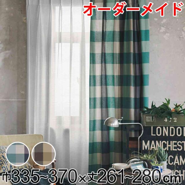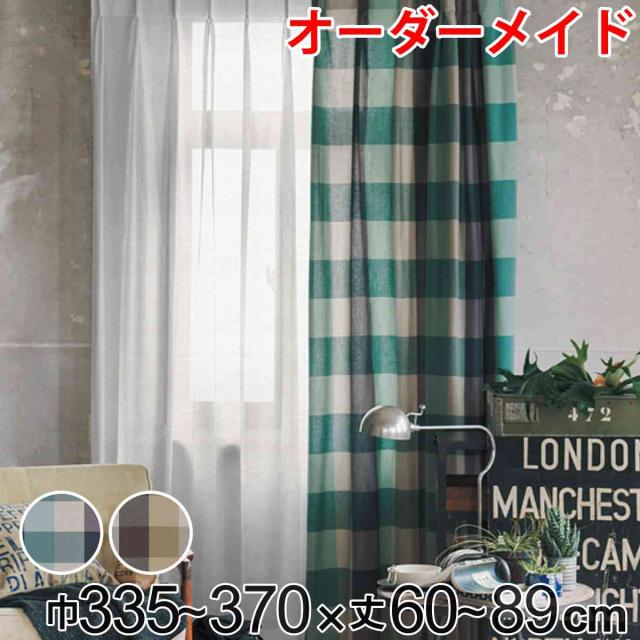 カーテン オーダーカーテン ドレープカーテン ヤマノボリチェック 1.5倍ヒダ 巾335〜370×丈60〜89cm ( オーダー サイズオーダー オーダーメイド 1cm単位 チェック柄 ヒダ 広い おしゃれ 日本製 ナチュラル )