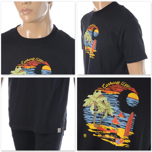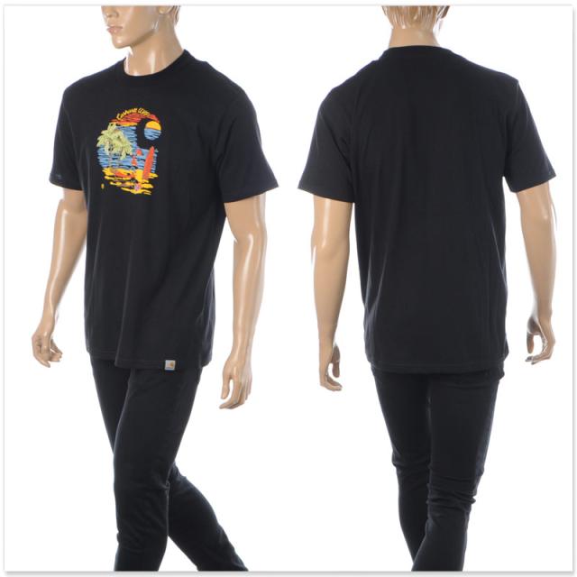 カーハート Carhartt WIP Tシャツ メンズ 半袖 S/S BEACH C T-SHIRT I029020 クルーネック ブラック ロゴ プリント ストリート カジュアル 人気 ブランド
