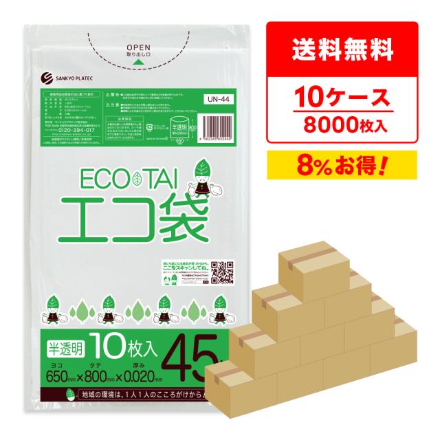【まとめて10ケース】UN-44-10 ポリ袋 45リットル 0.020mm厚 半透明 10枚x80冊x10箱 / ゴミ袋 ごみ袋 送料無料