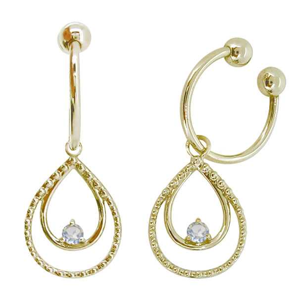 イヤリング おしゃれ 18k イヤーカフ レディース フープイヤリング ロイヤルブルームーンストーン しずく ドロップ 母の日