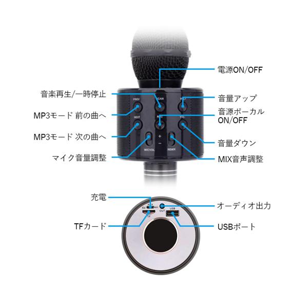 スピーカー、ボイスチェンジャー機能付き ワイヤレスカラオケマイク