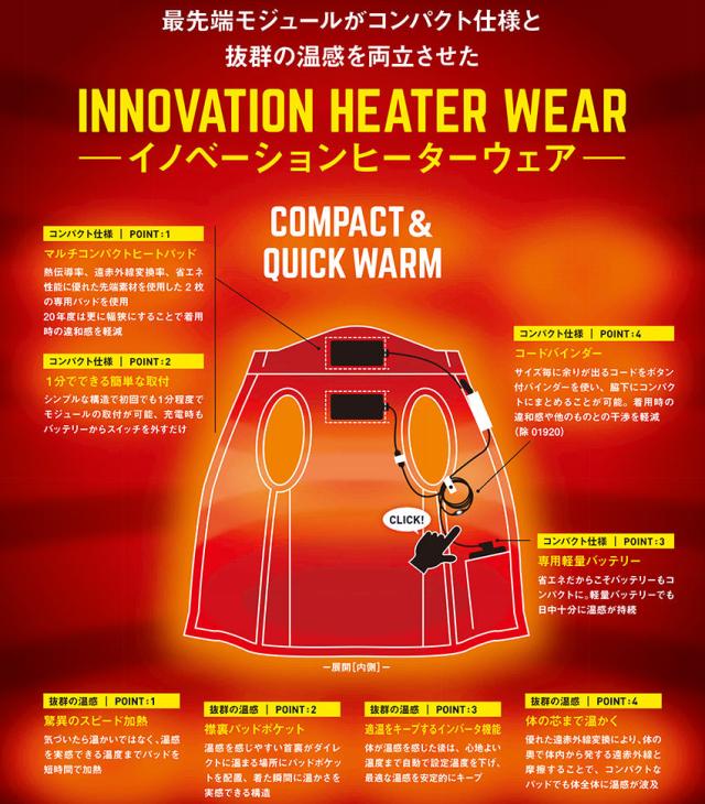 最先端モジュールがコンパクト仕様と抜群の温感を両立させた「イノベーションヒーターウェア」