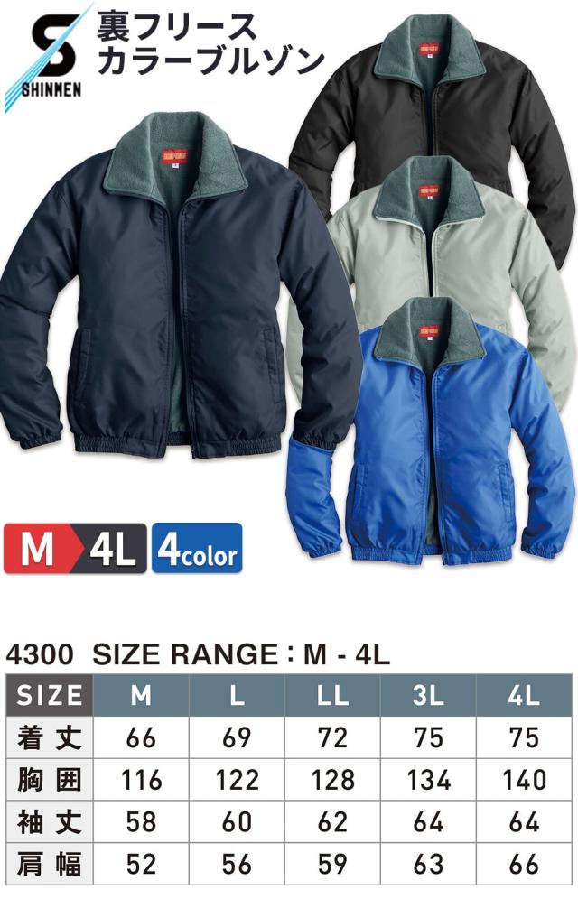 防寒ジャンパー シンメン 裏フリースカラーブルゾン 4300 作業着 防寒 作業服