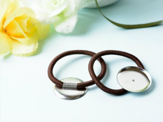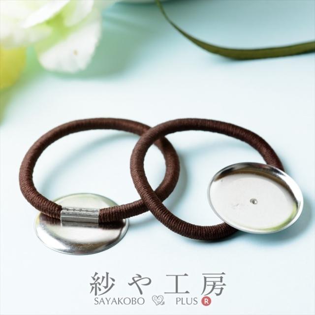 ヘアゴム パーツ 丸皿付き ブラウン 皿直径約3cm ヘアゴム直径約5cm 2個 2ヶ ミール皿 台付き リングゴム アクセサリーパーツ パーツ 問屋 ヘアアクセ 髪飾 ヘアゴム土台 ヘア金具 レジン土台 レジン台 レジン用品 接着 貼付 接着台 セッティング台 貼付台 さや工房 手作り