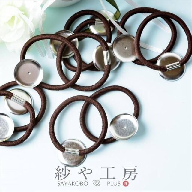 ヘアゴム パーツ 丸皿付き ブラウン 皿直径約2.5cm ヘアゴム直径約5cm 10個 10ヶ ミール皿 台付き リングゴム アクセサリーパーツ パーツ 問屋 ヘアアクセ 髪飾 ヘアゴム土台 ヘア金具 レジン土台 レジン用品 接着 貼付 接着台 セッティング台 貼付台 さや工房 手作り