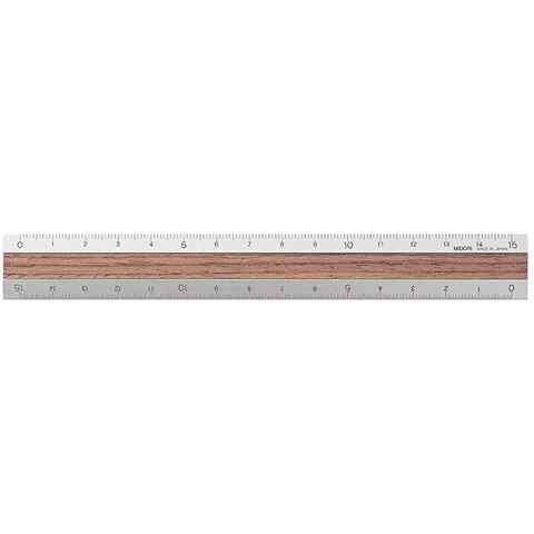 ミドリ 定規 アルミ ウッド 15cm 濃茶 送料無料