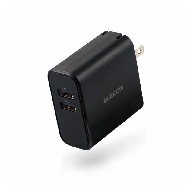 エレコム スマートフォン・タブレット用AC充電器 4.8A出力 USB-Aメス2ポート おまかせ充電搭載 ブラック MPA-ACU05BK(代引不可)