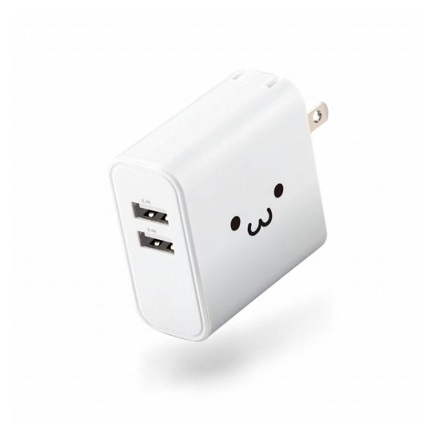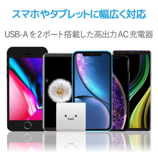 エレコム スマートフォン・タブレット用AC充電器 4.8A出力 USB-Aメス2ポート おまかせ充電搭載 ホワイトフェイス MPA-ACU05WF(代引不可)