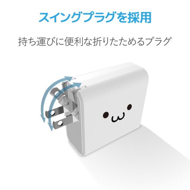 持ち運びに便利なコンパクトサイズでありながら、おまかせ充電対応でiPhoneもAndroidも快適に2台同時充電が可能な2ポート合計4.8Aの高出力AC充電器。