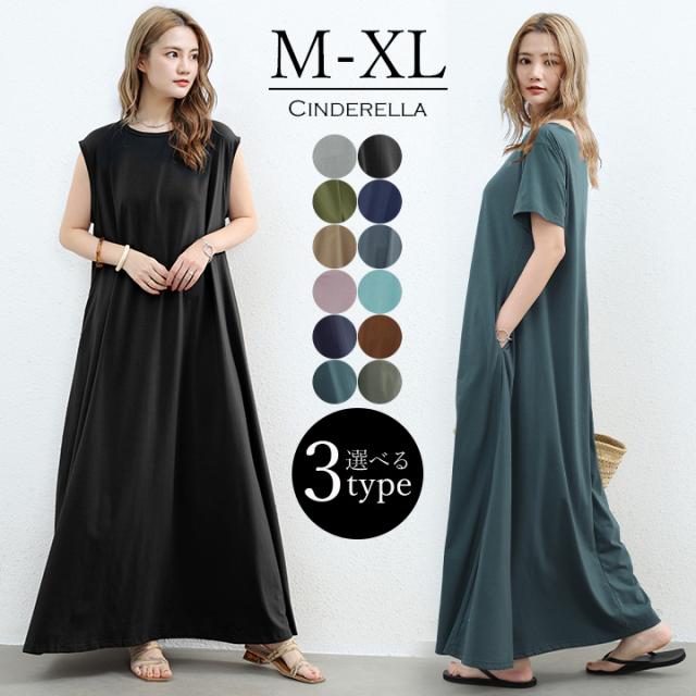 マキシ丈ワンピ Tシャツ ロング 大人カジュアル ヌケ感 ワンピース 無地 シンプル マキシワンピース ドロップショルダー ビッグT ロングT Tee クルーネック 半端袖 五分袖 半袖 ノースリーブ 長袖 肩見せ 細見え 二の腕カバー 長め丈 ゆるワンピ フレア 抜け感 くすみ