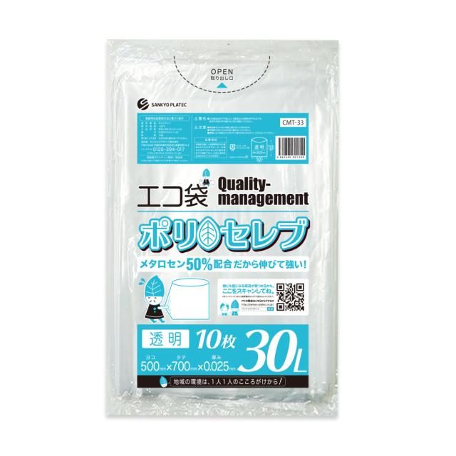【バラ販売】CMT-33bara ポリセレブ ポリ袋 30リットル 0.025mm厚 透明 10枚/ ゴミ袋 ごみ袋
