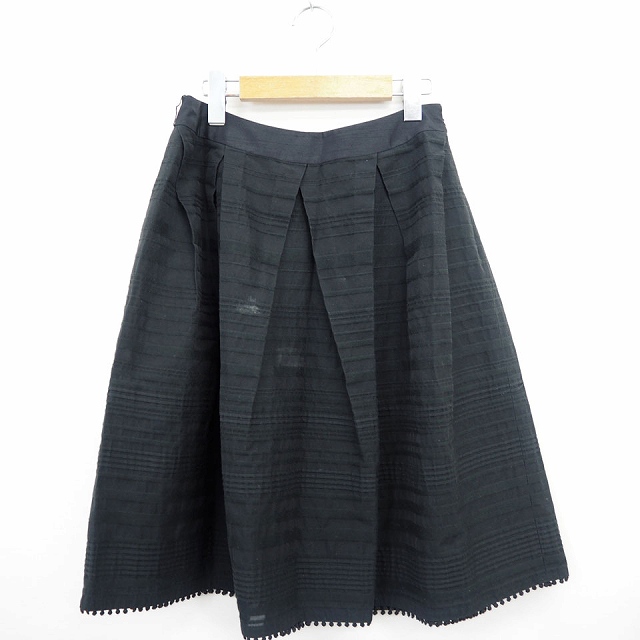 【中古】トゥービーシック TO BE CHIC フレアスカート レース ボーダー ひざ丈 ひざ下 シンプル コットン 綿 40 黒