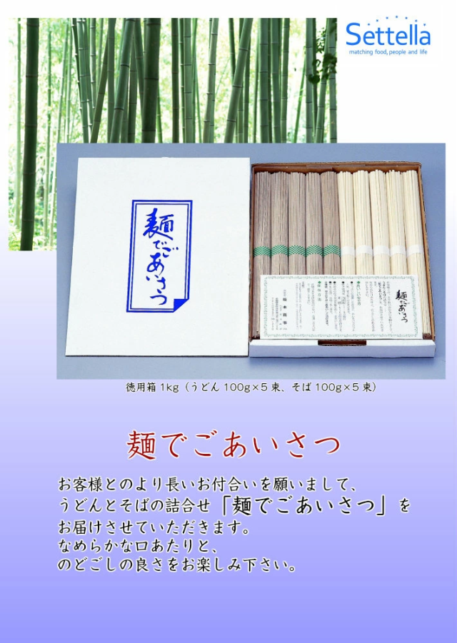 | 原材料名 | 【干しうどん】小麦粉、食塩 【干しそば】小麦粉、そば粉、食塩 |