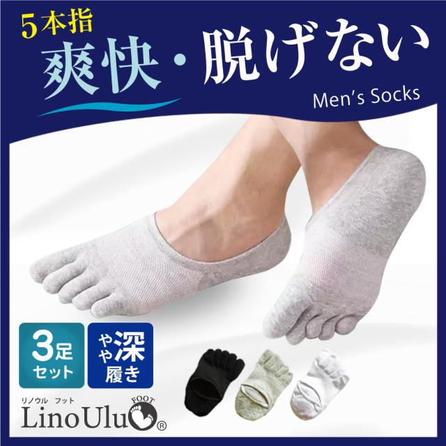 [3足セット]5本指 ソックス メンズ ショート 靴下 脱げない フットカバー メッシュ 汗 ニオイ 外反母趾 対策 減菌 消臭 効果 スポーツ ビジネス 通勤 通学 スニーカー おすすめ おしゃれ カジュアル シンプル 薄手 綿 コットン 春 夏 秋 リノウル