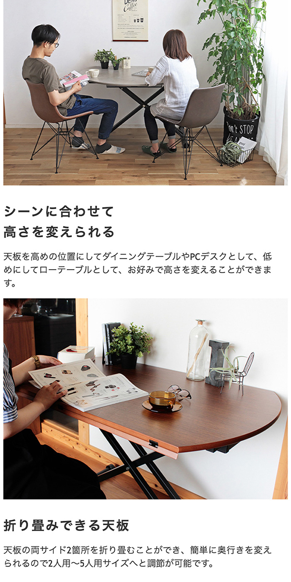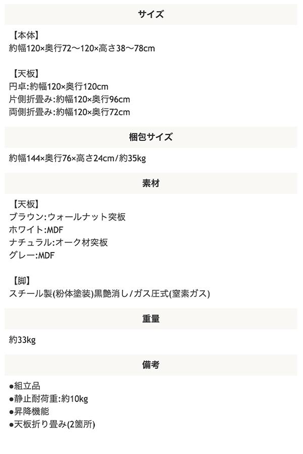 ALS-SST 昇降式式 変形式 ラウンドテーブル ローテーブル ブラウン色/グレー色/ホワイト色/ナチュラル色 約幅120×奥行72〜120×高さ38〜78cm
