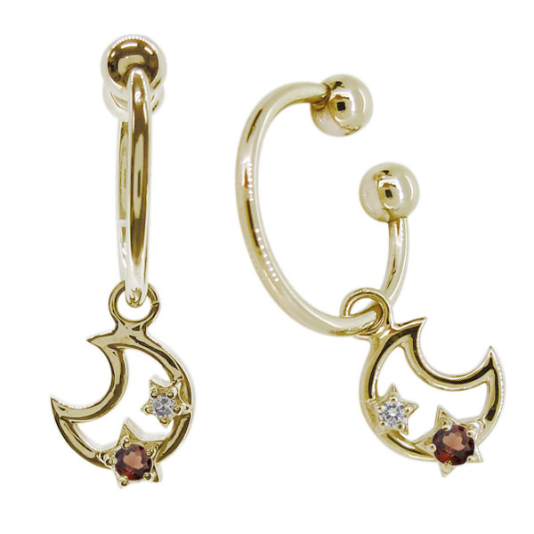 イヤリング おしゃれ イヤーカフ レディース フープイヤリング ガーネット 月 星 K18金 ノンホールピアス 母の日