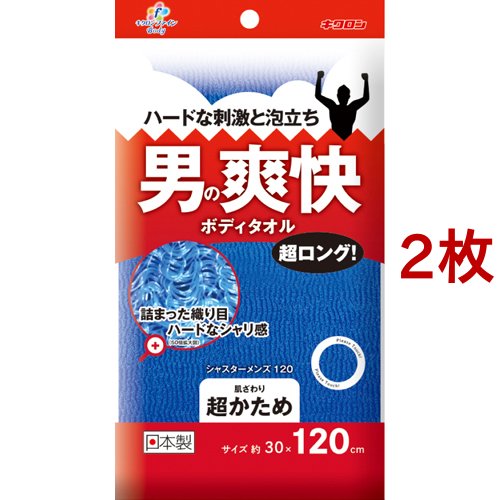 キクロンファイン 爽快ボディタオル 超ロング シャスターメンズ 超かため ブルー(2枚セット)[ボディタオル]