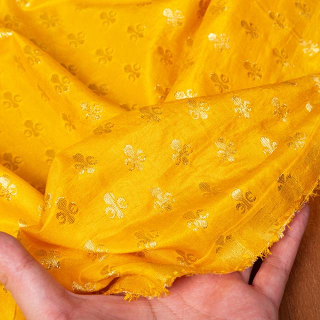 伝統的な紋様とインドらしい鮮やかなカラーリングがマッチングした素敵な布です。色合いが美しく、手芸用の布としてはもちろんインテリア用のカバーや飾り布として様々な場所でお使いいただけます。ソファカバーやカーテン、等々色々な使いみちが考えられますね。陰影が美しいので、オリジナルのスカーフや壁飾りにしても素敵です。