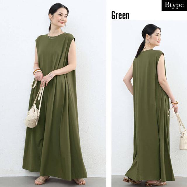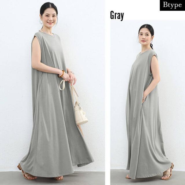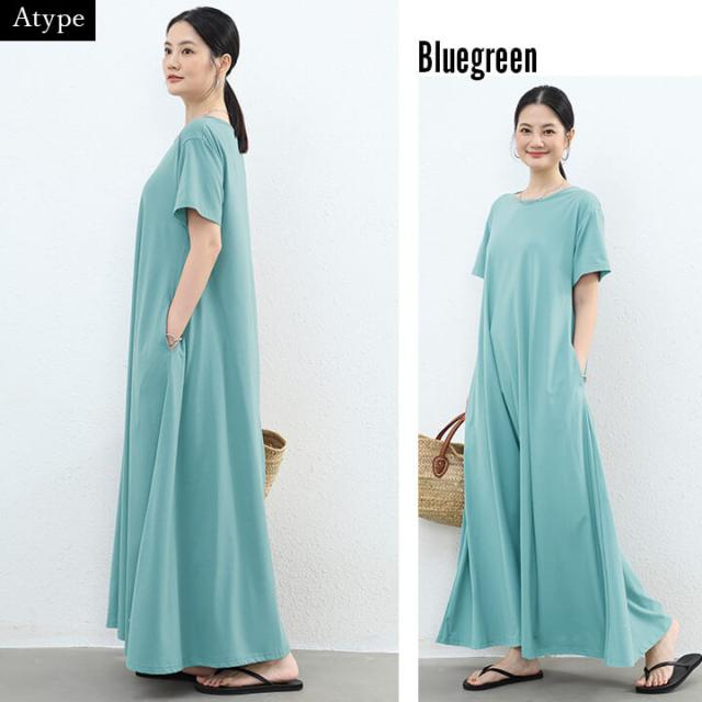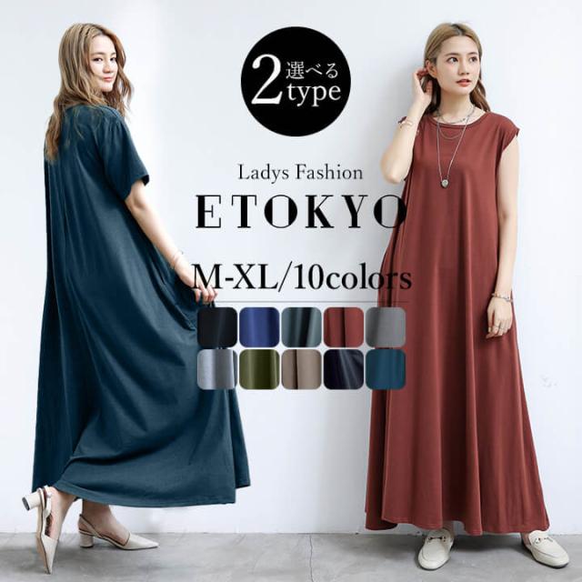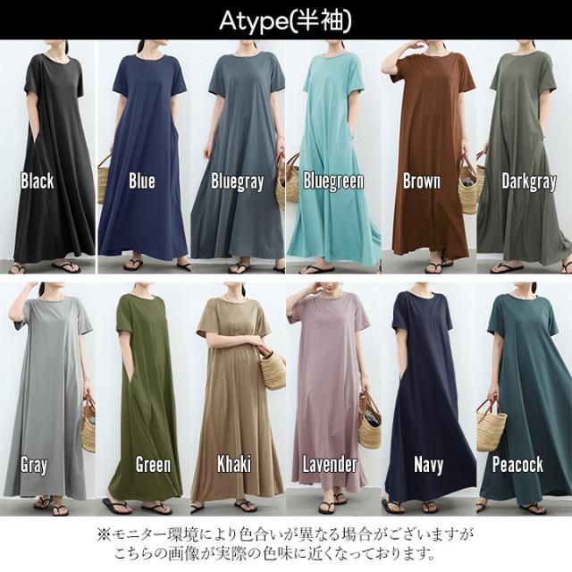 マキシ丈ワンピ Tシャツ ロング 大人カジュアル ヌケ感 ワンピース 無地 シンプル マキシワンピース ドロップショルダー ビッグT ロングT Tee クルーネック 半端袖 五分袖 半袖 ノースリーブ 肩見せ 細見え 二の腕カバー 長め丈 ゆるワンピ フレア 抜け感 くすみカラー ブラック ブラウン グレー グリーン ブルー カーキ