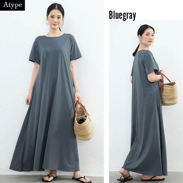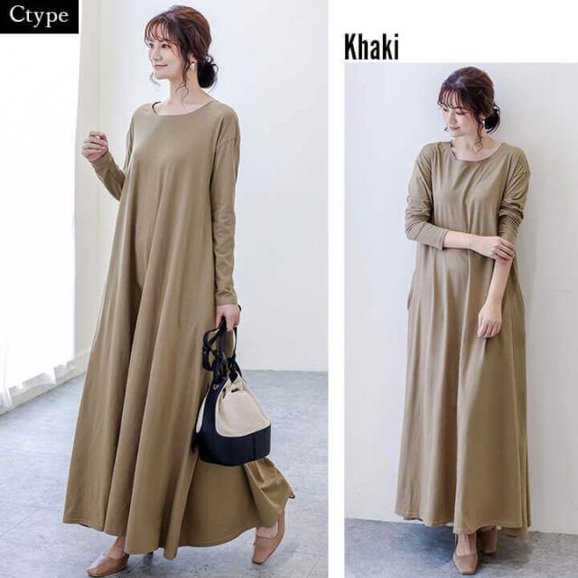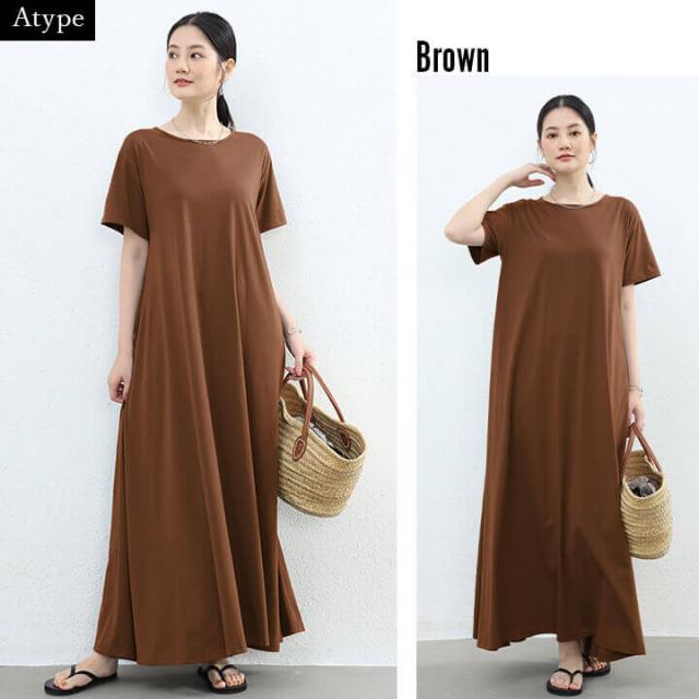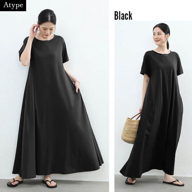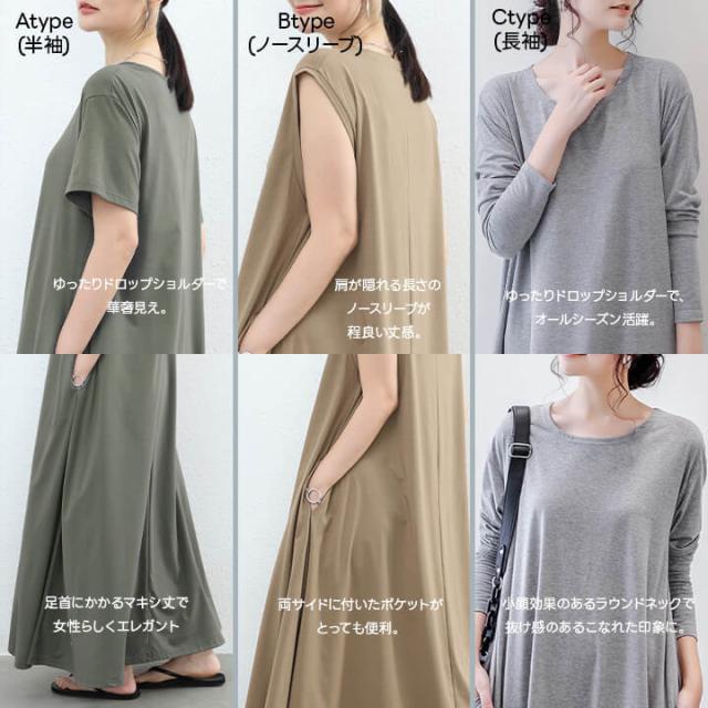 ■取扱商品の特長 マキシ丈ワンピース マキシ丈ワンピ Tシャツ ロング 大人カジュアル ヌケ感 ワンピース 無地 シンプル マキシワンピース ドロップショルダー ビッグT ロングT Tee クルーネック 半端袖 五分袖 半袖 ノースリーブ 肩見せ 細見え 二の腕カバー 長め丈 ゆるワンピ フレア 抜け感 くすみカラー ブラック ブラウン グレー グリーン ブルー カーキ