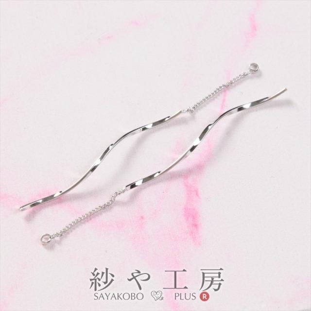 チャーム チェーン付 らせん型スティック カン付 シルバー 65mm 2個 2ヶ シンプル ねじり ひねり 真鍮 アクセサリーチャーム 約6.5cm アクセサリーパーツ パーツ 問屋 メタルパーツ 金属チャーム 金属パーツ 材料 ハンドメイド資材 さや工房 手作り