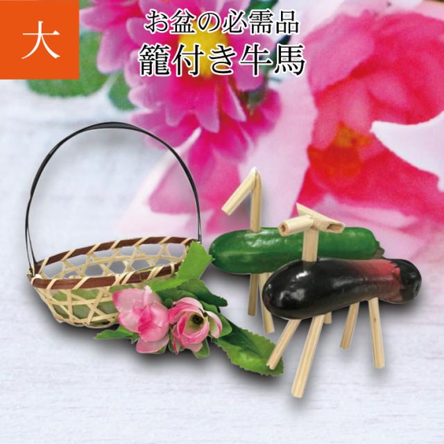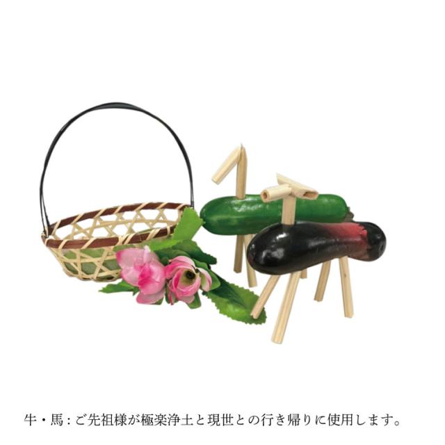 お盆飾り 籠付き牛馬 大 造花付き 精霊馬 牛 お盆 ペット仏具 ペット供養 犬 猫 ペットロス 本格的 迎え火 送り火 戸外用 初盆 新盆 ペット仏壇に