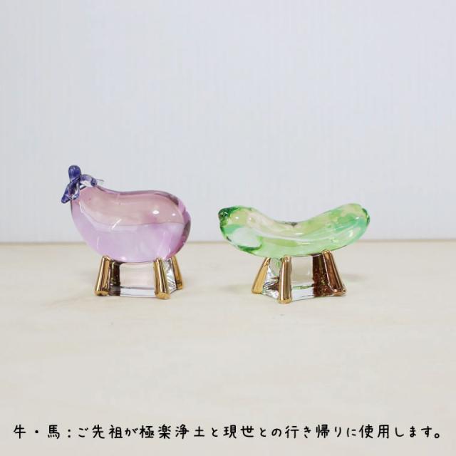 お盆飾り クリスタル精霊馬 牛 馬 きゅうり ナス かわいい お盆用品 手元供養 ペット仏具 ペット供養 犬 猫 ペットロス 本格的 迎え火 送り火 戸外用 初盆 新盆 ペット仏壇に