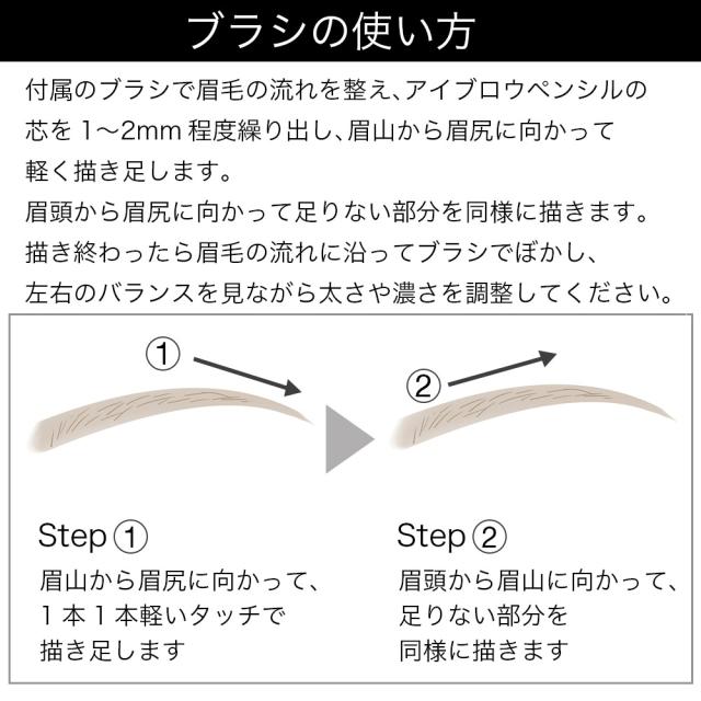 付属のブラシで眉毛の流れを整え、アイブロウペンシルの芯を1〜2mm程度繰り出し、眉山から眉尻に向かって軽く描き足します。