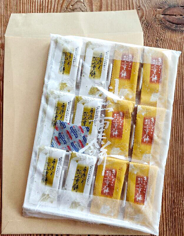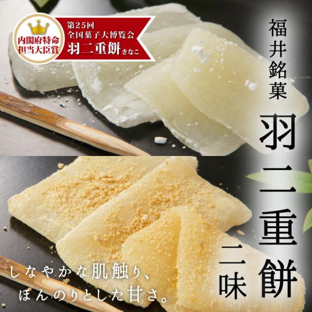 【送料無料】福井銘菓 羽二重餅 お試し用 2種セット 12枚入り (白+きなこ各6枚) 【福井県産もち米使用】 [ 箱なし 包装なし お得 お菓子 おやつ もち菓子 お餅 柔らかい 餅 二味 ] ゆうパケット