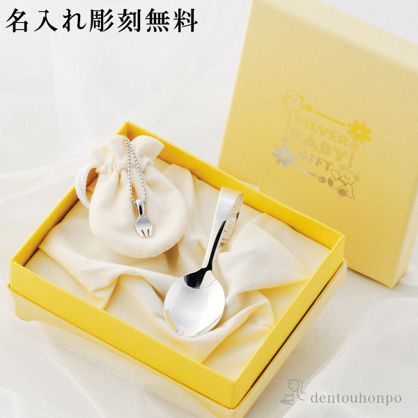 「送料無料」 銀製 ベビースプーン&ベビーフォークペンダントセット 名入れ彫刻料込み ( 退職祝い 定年 赤ちゃん ベビー キッズ )