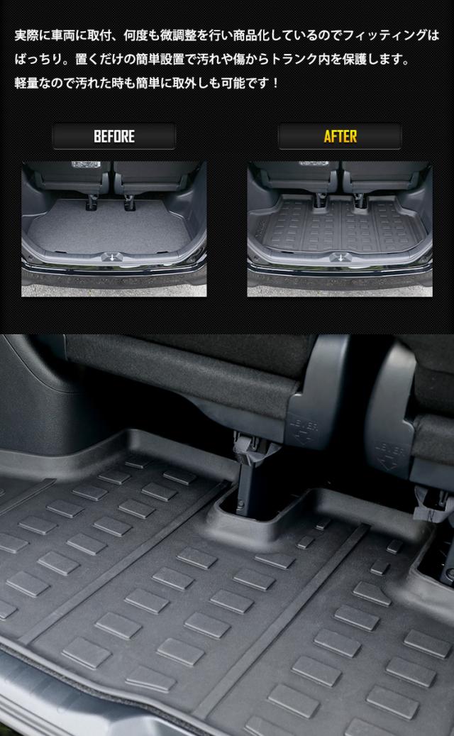 本品は置くだけだけの簡単設置で汚れや傷からトランク内を保護します。