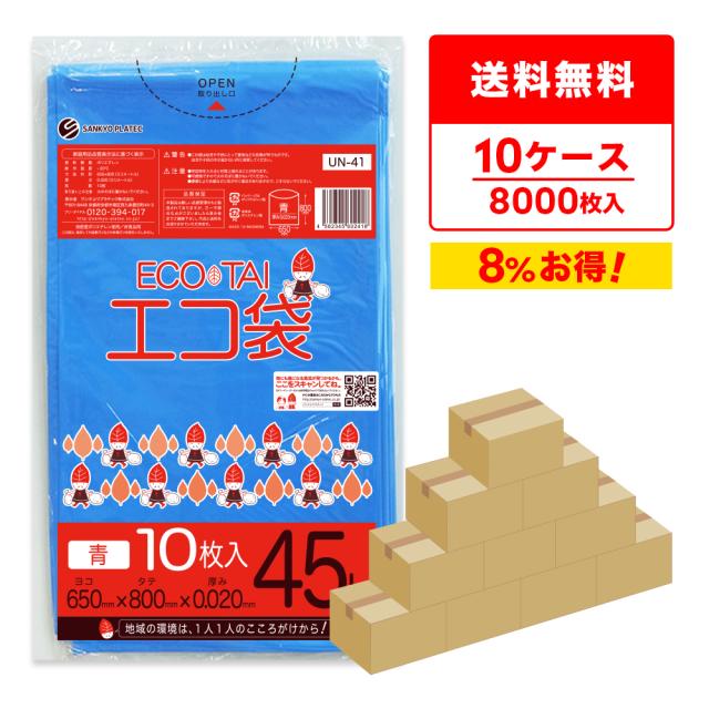 【まとめて10ケース】UN-41-10 ポリ袋 45リットル 0.020mm厚 青 10枚x80冊x10箱 / ゴミ袋 ごみ袋 送料無料