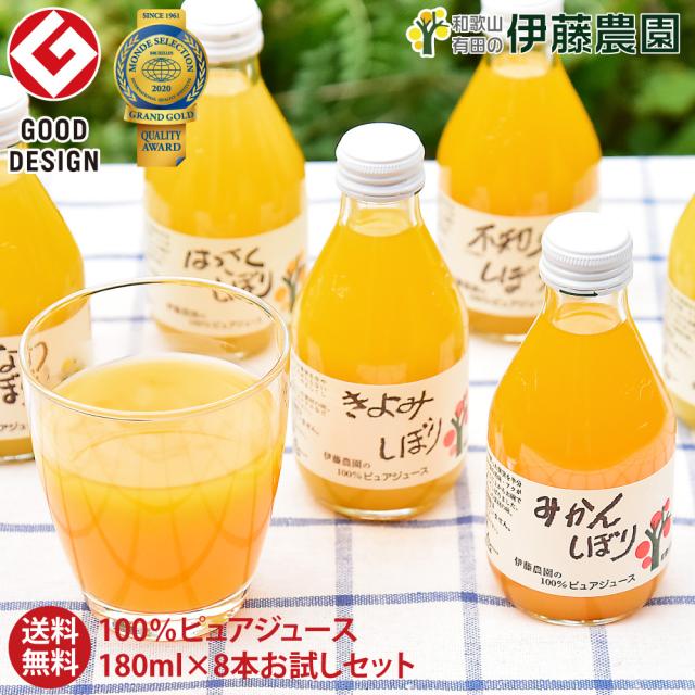 ギフト みかんジュース ストレート お試し 送料無料 8本セット 国産 無添加 果汁100% 飲み比べ みかんしぼり 伊藤農園 ジュース 小瓶 ギフト 自家用 お返し お取り寄せ