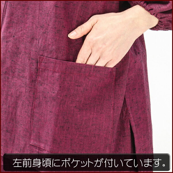 紬織婦人作務衣『紫檀・ワイン』カラーです。