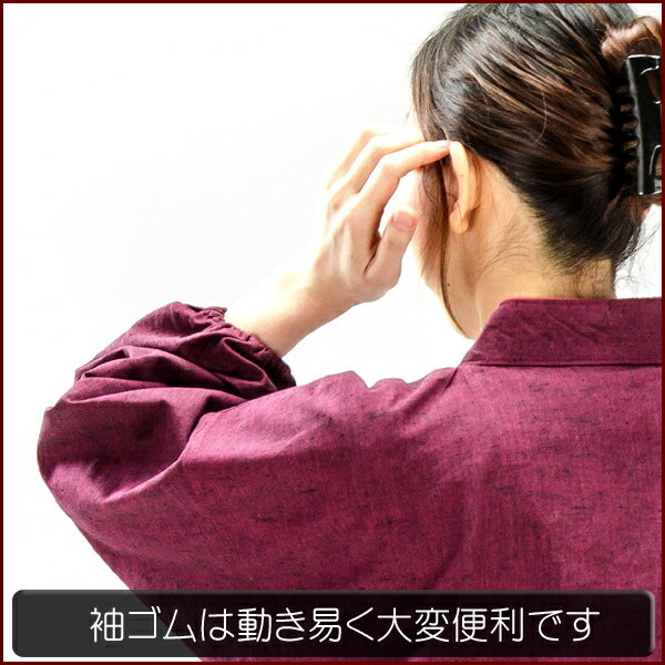 袖口と裾をゴムで絞り、作業しやすくなっています。普段着や趣味の作業をする時などにはもちろん、小料理店、旅館などの制服としてもお使いいただけます。