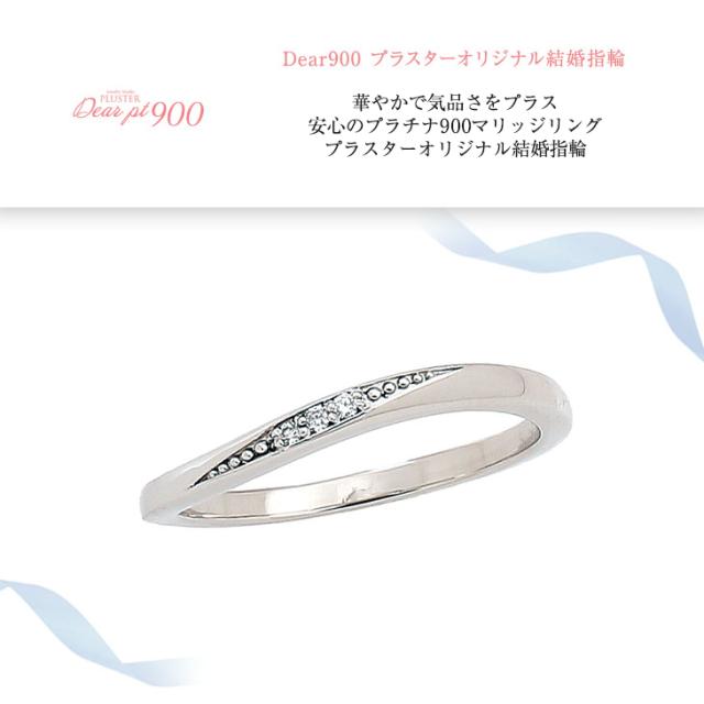 【Dear900 プラスターオリジナル結婚指輪】2本セットで11万円(税別)!安心のプラチナ900マリッジリング.☆.。.:*・プラスターオリジナル結婚指輪。女性用には美しいダイヤモンドが輝きます。記念日やイニシャル等、ご希望の文字彫りを最大15文字まで無料サービスで承ります。リングサイズ:#6〜#18素材:PT900 石目:ダイヤモンド3石(0.01ct)幅:最大 約2mm/最小 約1.5mm厚み:最大 約2mm/最小 約1mm納期:4週間(オーダー対応)【文字彫りに関しまして】購入手続きの途中で「配送日指定」という欄が出てまいります。この欄の下部にございます「その他配送についてご希望がある場合」の欄内に、ご希望の文字彫り内容を「英数字15文字以内」(例:2013.12.25 A to B)でご記入下さい。大文字・小文字の指定も可能です。 男女ペアで購入された場合には、メンズ:(15文字以内)レディース:(15文字以内)とそれぞれのリングに文字彫りする内容をご入力ください。