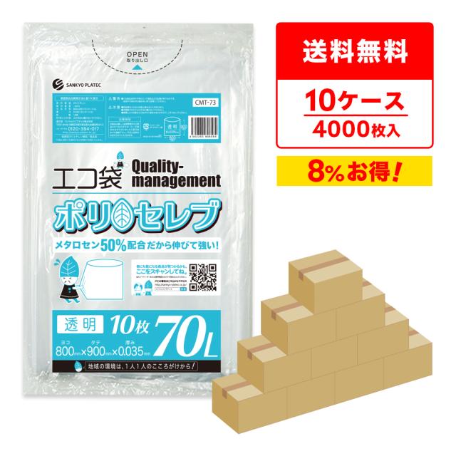 【まとめて10ケース】CMT-73-10 ポリセレブ ポリ袋 70リットル 0.035mm厚 透明 10枚x40冊x10箱/ ゴミ袋 ごみ袋 送料無料