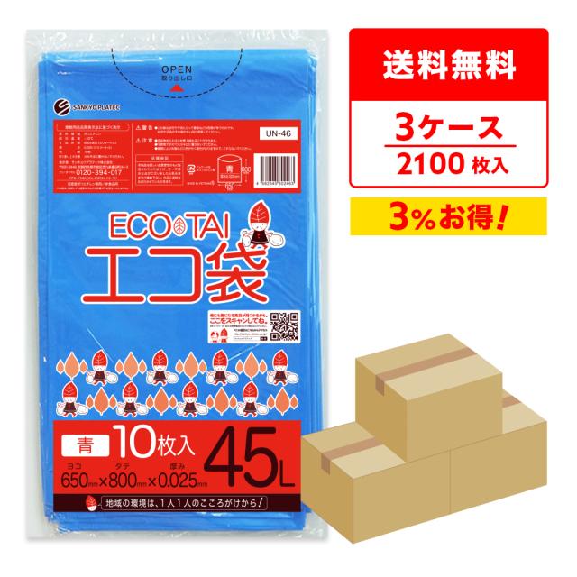 【まとめて3ケース】UN-46-3 ポリ袋 45リットル 0.025mm厚 青 10枚x70冊x3箱 / ゴミ袋 ごみ袋 送料無料