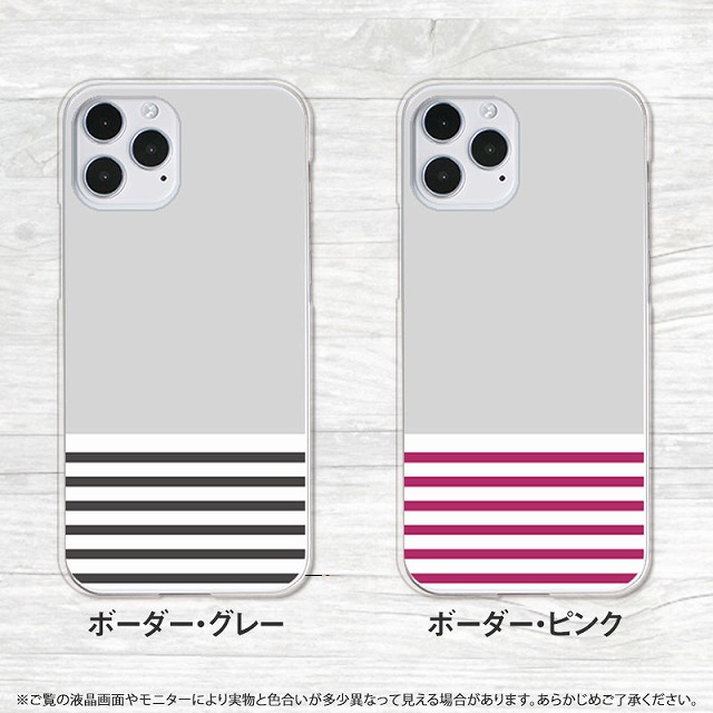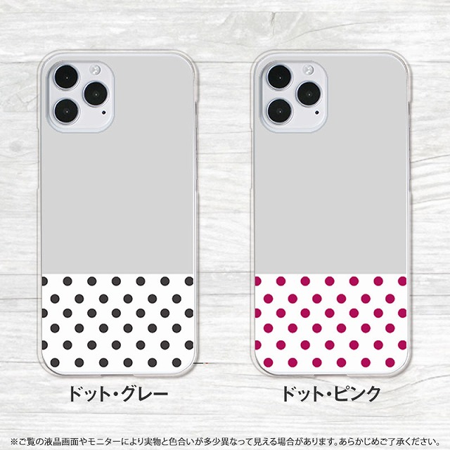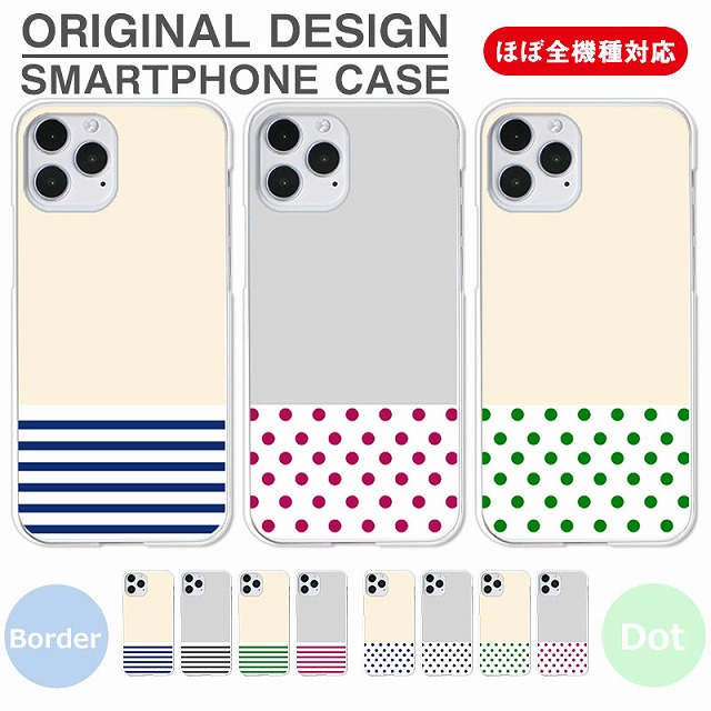 無地柄とボーダー柄またはドット柄を組み合わせたシンプルなデザインのスマホハードケースです。