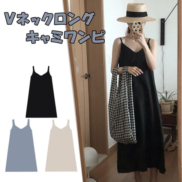 マキシ ワンピース Vネック ロング キャミ キャミソール ワンピ シンプル きれいめ (zk802) ルームウエア 部屋着 リゾートウェア ルームワンピース ルームワンピ レディース 女性 メール便送料無料