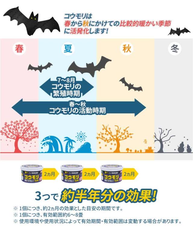 コウモリが活発化する春〜秋にかけて継続的に使用できます。
