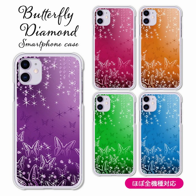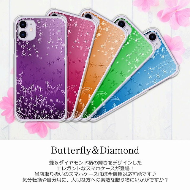 スマホケース バタフライ ダイヤモンド 蝶 BD スマホカバー クリアハードケース iPhone17 iPhone16e Xperia 1VI 10VII あんしんスマホ KY-51B AQUOS sense9 sense8 Galaxy A55 S24 arrowsWe2 BASIO active3 Google Pixel8a Pixel10 グーグルピクセル9a 送料無料 多機種対応