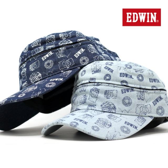 EDWIN ワークキャップ デニム サンバイザー メンズ エドウィン 帽子 総柄 おしゃれ キャップ 日よけ デニムキャップ レディース ユニセックス デニム帽子