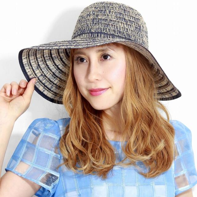 エレガントなシルエットのワイドブリムハット ミックスカラー