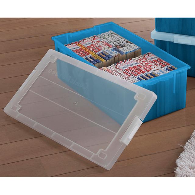 コミック 漫画 ビデオ 収納ケース バックル式 収納ボックス フタ付き カラーボックス プラスチック おしゃれ クリアブルー 同色 6個組 完成品 日本製