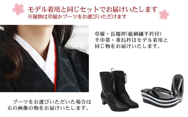 着物・袴・草履orブーツ・巾着・長襦袢(総刺繍半衿付)