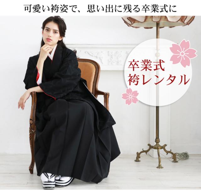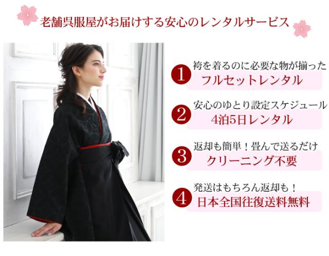 【レンタル】 卒業式 袴 レンタル 女 袴セット 女性 卒業式袴セット 2尺袖着物&袴 フルセットレンタル 大学生 モダン 「黒地に七宝柄」 二尺袖 上品 大人 モノトーン