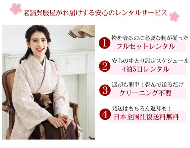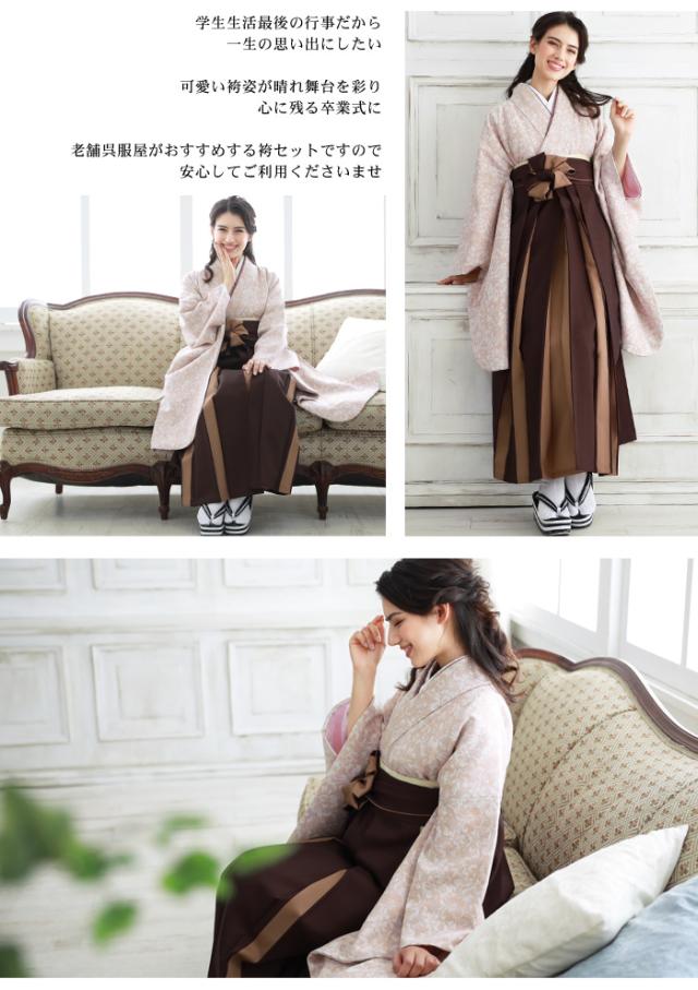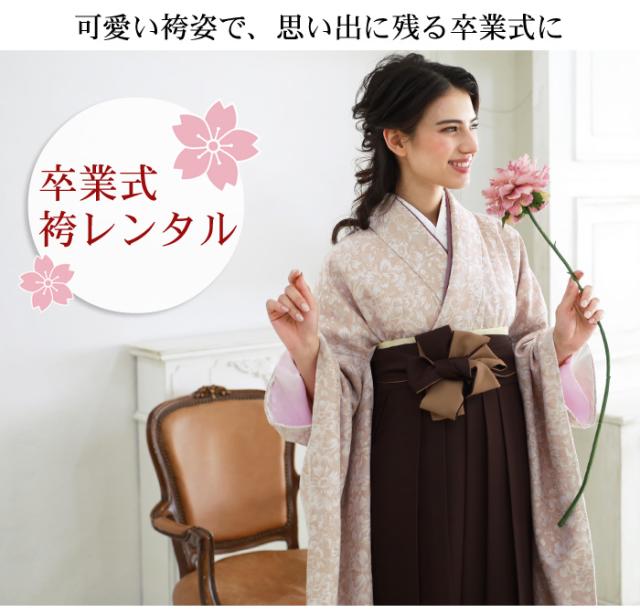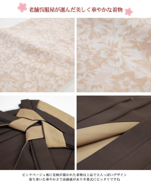 【レンタル】 卒業式 袴 レンタル 女 袴セット 女性 卒業式袴セット 2尺袖着物&袴 フルセットレンタル 大学生 モダン 「ピンクベージュ地に花柄」 二尺袖 上品 大人
