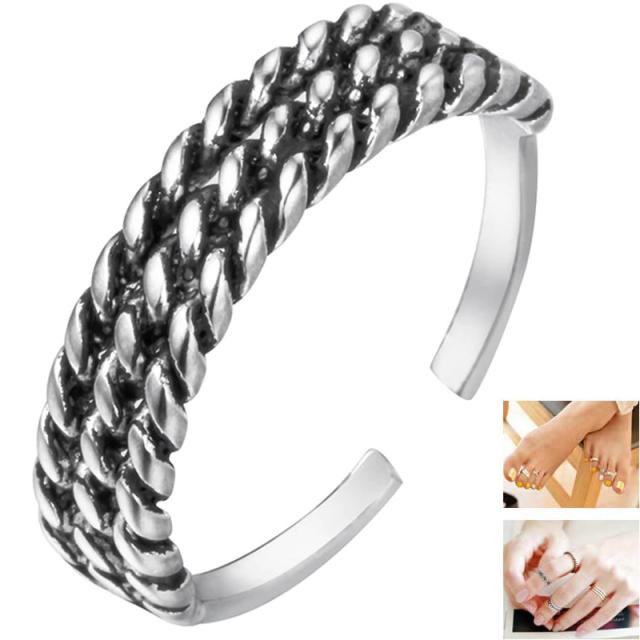 [フリーサイズ 指輪 足の指] 3連ロープ トゥリング 足の指輪 トーリング 足のリング ピンキーリング ファランジリング メンズ レディース 小指 関節 指先 イヤーカフ カフリング リングカフ プレゼント 人気 男子 女子 彼氏 彼女 贈り物向き シルバー 紐 縄 3本 エスニック