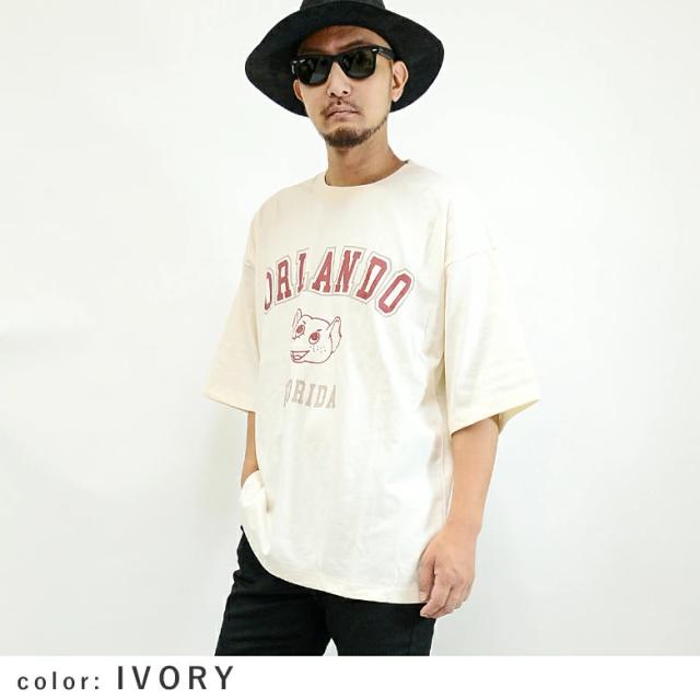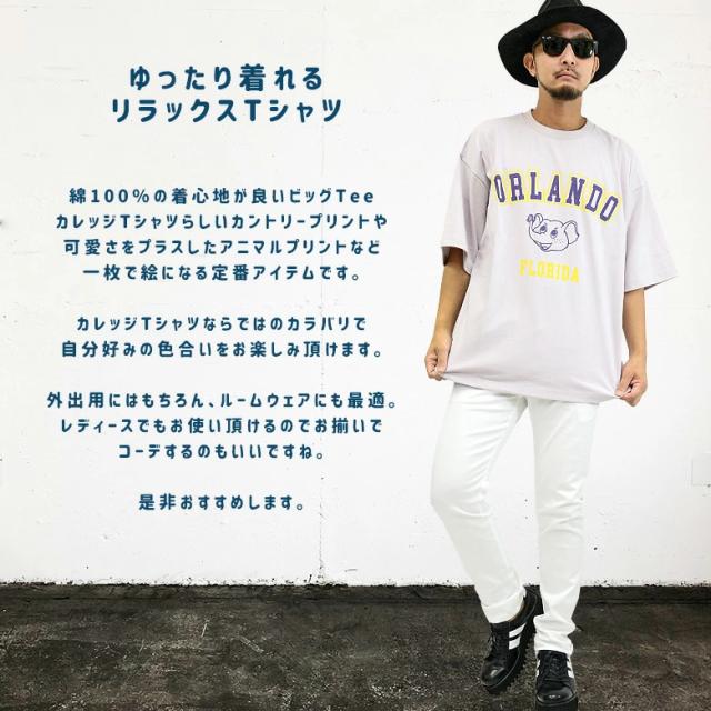 【閉店セール】カレッジプリント 半袖ビッグTシャツ 8182s021 メンズTシャツ ビッグサイズ オーバーサイズ ビッグシルエット ゆったり 丸首 Tee ホワイト アイボリー ブラック オートミール ラベンダー かわいい お揃い 部屋着 ルームウェア カントリー